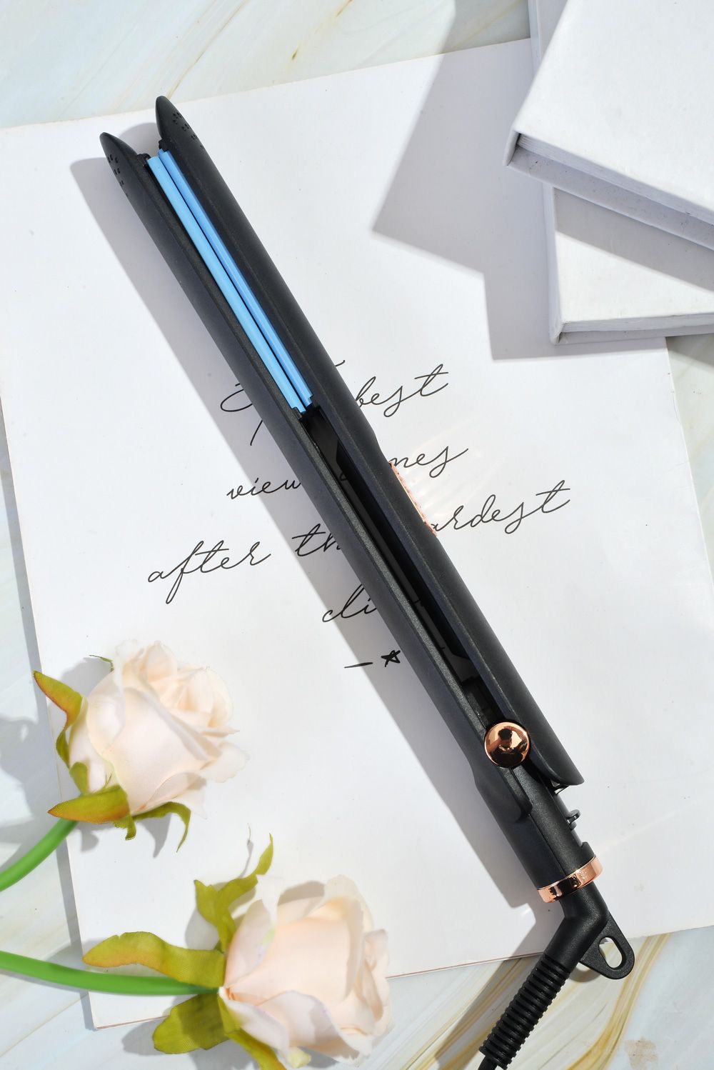 Tourmaline-infused- Rock hair that's sleek,it helps reduce static for a look that's silky and shiny.sinfused with tourmaine,that come together to create pin-straight tresses. Yet, with a twist of the wrist, you can also create soft, lush waves and curls.Versatile hair styling- Ergonomic design with rounded edges and floating platesconvenient 360’swivel cord - plus, the cord allows you to maneuver as you please to create the perfect look, helping make an everyday styling staple.Travel Companion - Our flat iron with safety lock function is perfect for travelinallaws you to store it in the trunk and change diferent hair stvles during your trips more easily, and top up your stvle anywhere
